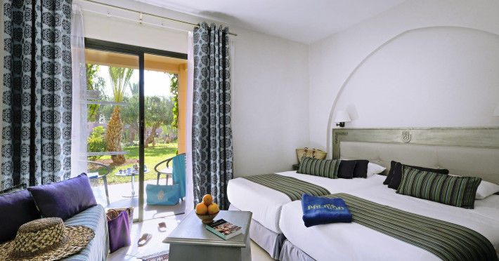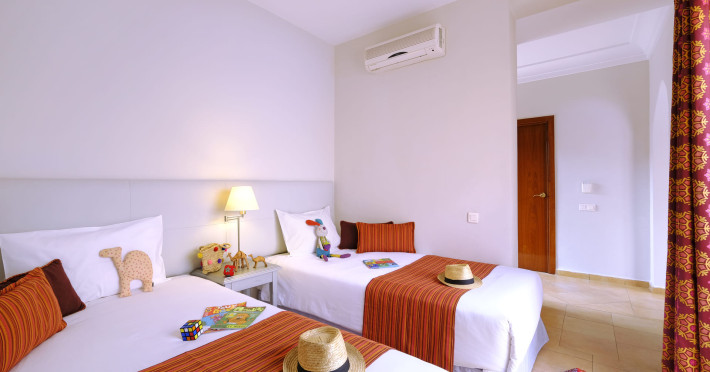 The hotel Valeria Dar Atlas Resort All Inclusive is located 3 km from the nearest bars and restaurants. The old town is around 12 km away. A supermarket is around 4 km away. There is a 24h shuttle service between the hotel and the airport (for a fee) 24h a day. The air-conditioned, GPS-verified halal hotel is equipped with a 24h reception, a lobby, Wi-Fi, internet access, a shop, a boutique, cash machine, a hairdresser, a jacuzzi, showers and changing rooms, a first aid kit, parking spaces as well as a TV lounge with satellite TV. In the outdoor area of the property you will find a garden as well as a seasonally heated pool (open all year) with clubhouse, where sun loungers, sun umbrellas and pool towels are available for free. There is also a separate children's pool with a water slide (type twister/open slide/tunnel slide). Furthermore, you can relax outdoors on a roof terrace. Inside the hotel you can use a heated indoor pool. You can store your valuables in the safe (extra fee), and your luggage in the hotel`s storage room. In addition, the hotel Valeria Dar Atlas Resort All Inclusive is video-monitored 24h a day. For your entertainment, the hotel offers a theatre and a disco. For the young hotel guests there is a playground. For very young guests, kid`s chairs can also be provided. There is also a laundry service available at an additional cost to customers. Ironing equipment can be rented at the hotel for a fee. For your comfort the hotel page will ensure you are looked after. If necessary, you can contact the medical centre (for a fee). For conventions and other business meetings, the hotel offers EXTRA_FEE (auditorium-style) conference rooms with a total of 400 seats, a reception, tables, a video projector, printer, internet access as well as a catering service. A photographer can also be ordered from the hotel for business events. If you want to explore the holiday region, you can use the car rental service close to the hotel (extra fee). At the reception, tickets are offered for excursions in the area. For guests on their honeymoon, the hotel has special offers such as a romantically-decorated room, personalised rooms/articles, rooms with a particularly romantic location and view, special honeymoon packages, romantic dishes in the restaurant, champagne, sparkling wine, a present, a basket of fruit or flowers in the room. In your hotel, a lot of focus is placed on sustainability. This includes the hotel`s own recycling bins, the provision of soap, shampoo and lotion dispensers, ecological meals and environmentally-friendly cleaning. That is why the hotel Valeria Dar Atlas Resort All Inclusive was also awarded a sustainability certificate. Euro/Master Card and EC cards are accepted as means of payment. Due to its barrier-free facilities , such as barrier-free entrances and wheelchair accessible rooms, the hotel is also suitable for wheelchair users. Catering As catering services the hotel offers all-inclusive. Breakfast is offered American, continental or from the buffet. Lunch and dinner are also served à la carte or from the buffet with starters, salads and desserts. When booking all-inclusive, one welcome drink and - for an extra fee - one meal in the à la carte restaurant are included. As part of the all-inclusive service, international alcoholic beverages (limited) are available around the clock and at no extra charge. For the meals, there are a buffet restaurant with terrace (Italian and Mediterranean dishes) and several bars as well as the pool bar. The drinks menu of the hotel includes soft drinks, coffee and tea, beer, wine and 24h international alcoholic beverages. Distances- Discotheque: approximately at 2,5 km
