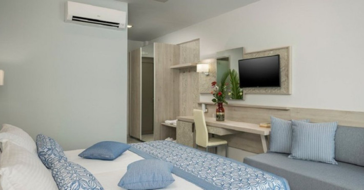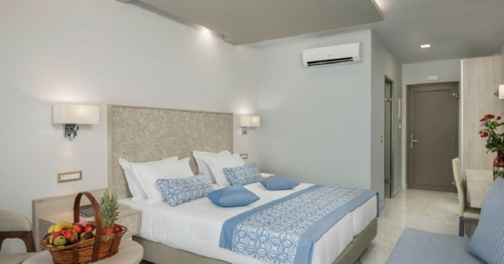 Sunt disponibile 56 camere. Oaspeții au la dispoziție serviciul de room service pentru a servi masa sau diverse băuturi. Unele camere au balcon, cu vedere la piscină, unde oaspeții se pot relaxa în voie. În camere există baie cu cadă sau duș ce are în dotare foehn și articole de toaletă gratuite. Camerele luminoase de la Vantaris Blue sunt dotate cu aer condiționat și Tv cu canale prin satelit. Oaspeții au acces gratuit la serviciul Wi-fi în camere. Curățenia in cameră se face zilnic. Toate camerele spațioase de la Vantaris Blue au zonă de relaxare. Fiecare unitate de cazare are frigider.