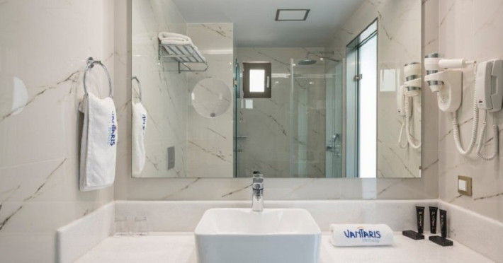 Din facilitățile oferite de proprietate (hotelul Vantaris Palace) nu lipsește centrul de wellnes și spa, unde oaspeții se pot relaxa la masaj, saună sau la baia cu aburi. Baia turcească face parte din oferta variată de servicii pe care le propune centrul spa. În cadrul proprietatății există piscină interioară pentru lunile mai reci sau pentru zile toride, precum și piscină exterioară unde oaspeții se pot relaxa și bronza în voie. Piscina exterioară este prevăzută cu șezlonguri confortabile, prosoape și umbrele de soare.