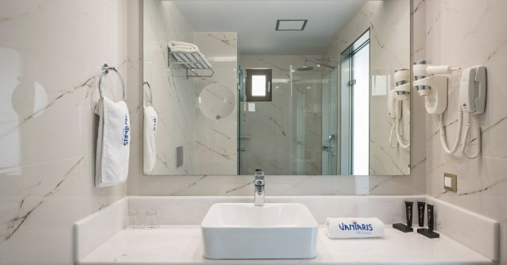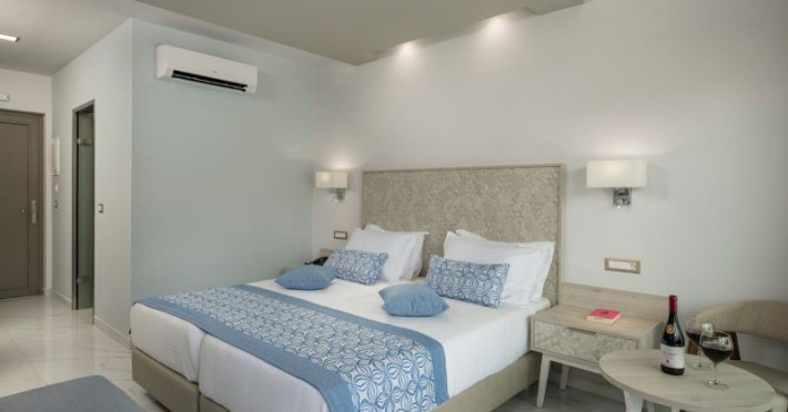 Situat în zona Kavros, Hotelul Vantaris Blue este o creație din 2019 a familiei Vantaris, concepută pentru a oferi călătorilor o experiență autentică și revitalizantă. Complexul Vantaris Blue este alcătuit din patru clădiri distincte, fiecare dispunând de 14 camere, pentru a oferi o atmosferă intimă și relaxantă. Acest loc deosebit pune accentul pe bunăstarea fiecărui oaspete, îmbinând cu grijă luxul discret, confortul excepțional și serviciile personalizate într-un mediu cu atenție la detalii.Facilități camere