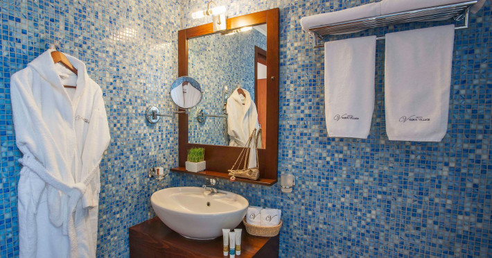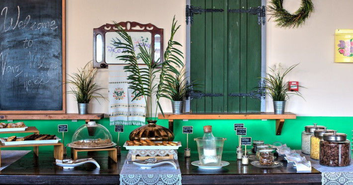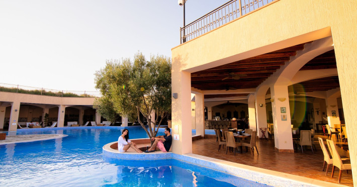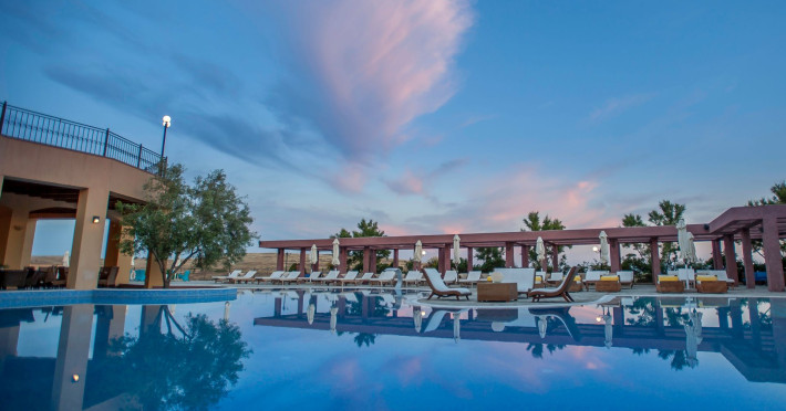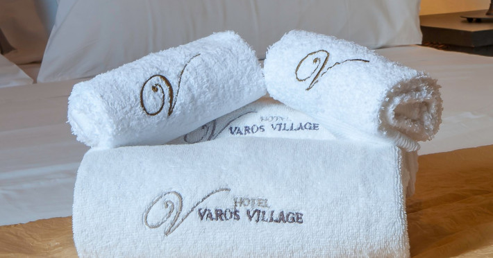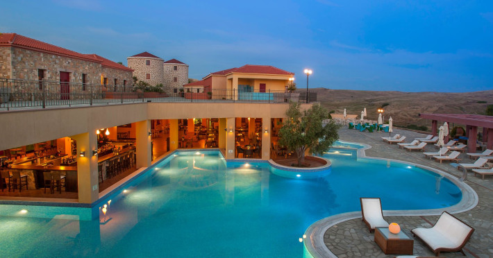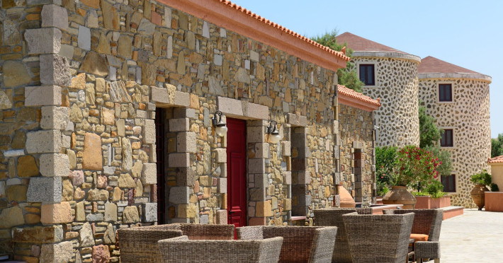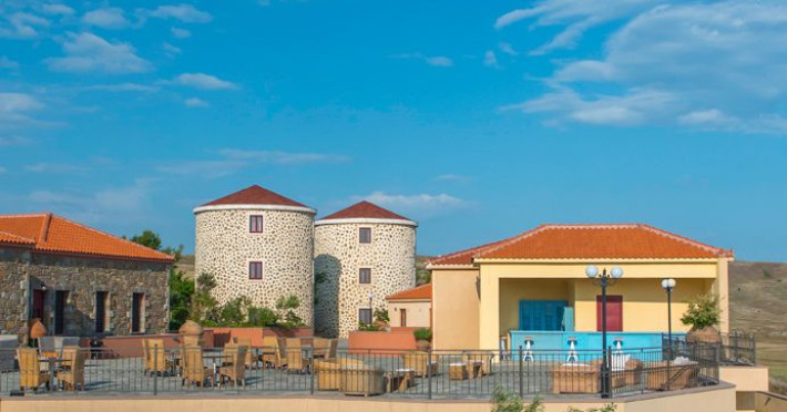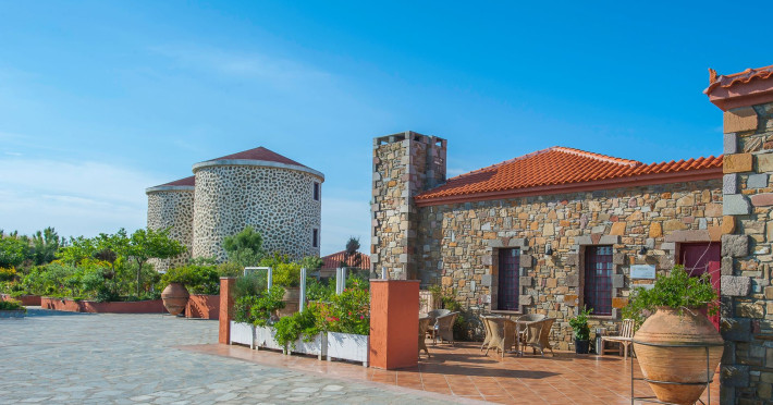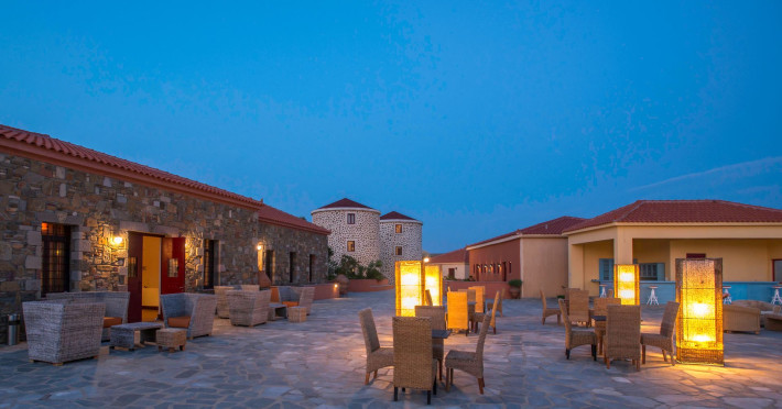 Since its grand opening in 2010 and its total renovation in 2019, “Varos Village Boutique Hotel” has been aiming to be a premium hotel product on the island of Leimnos. Our hotel is considered to be a “must visit” for anyone who wishes to experience high quality and unique services, as here you can feel like at home while enjoying hotels pambering and satisfying all needs. Inspired by the traditional architecture of Lemnos and taking advantage of the plenty of land we had in our hands in combination with the exploitation of the authentic flour mills and the grain store within the hotel area, we combined the traditional design with the modern, minimal style, giving birth to a unique result with 19 rooms & suites, 2 restaurants (one by the pool), 2 bars (one by the pool), gym, spa facilities and a big multi usage Hall with natural light. We also have our bio vines garden and veggie gardens with first raw materials which are used daily in our awarded cuisine. What fascinates more our guests upon arrival at the hotel is that they face an almost real, authentic Lemnian village at miniature size! An added touch of luxury is the fact that each Suite has its own private entrance and a furnished veranda overlooking the Aegean Sea or the hotel’s gardens and also our staff are very carefully selected to have what we call hospitality-personality. Our hotel does not offer the typical location of a summer resort on the seashore and is not located in the bustling capital of Myrina. On the other hand, the fact that the hotel is located in the heart of Lemnos, right in the center of the island, give us a strong, competitive advantage in terms of minimum time distance. The absolutely privacy, the spacious areas, the unique sunsets and caldera’s view, our awarded restaurant & our certified homemade, Greek breakfast, our pool fulfill with thermal waters from Lemnia Terra springs, our organic veggie gardens and vine gardens, unique design and architectural concept and the personalized concierge service, make us special. The authentic philosophy of Greek hospitality combined with our luxurious, from our heart offered services make “Varos Village Boutique Hotel” your destination in Lemnos! From this central point of Lemnos, we will help you to discover the countless attractions of the island and explore its beauty and its golden beaches, taking with you back home, a glimpse of Homeric Anemoessa ’s treasures! We look forward to welcoming you!