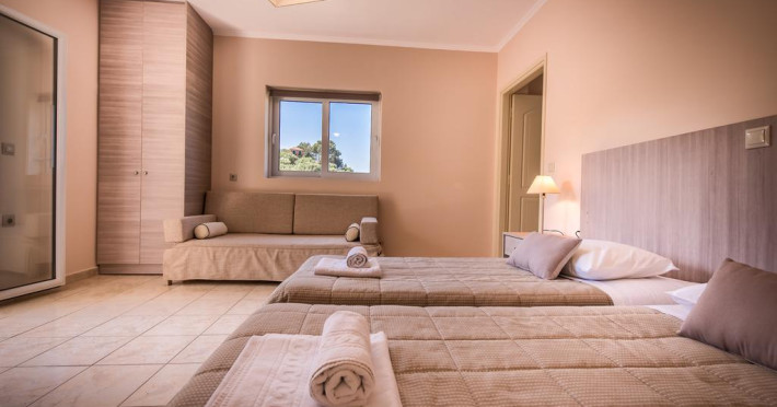 Cel mai apropiat aeroport este Aeroportul Internaţional Dionysios Solomos Zakynthos, situat la o distanță de 4,6 km. La cerere proprietatea organizează transfer la/de la aeroport contra cost.