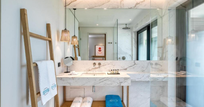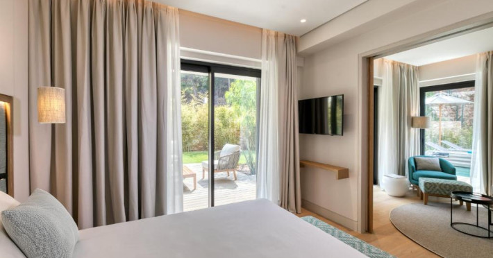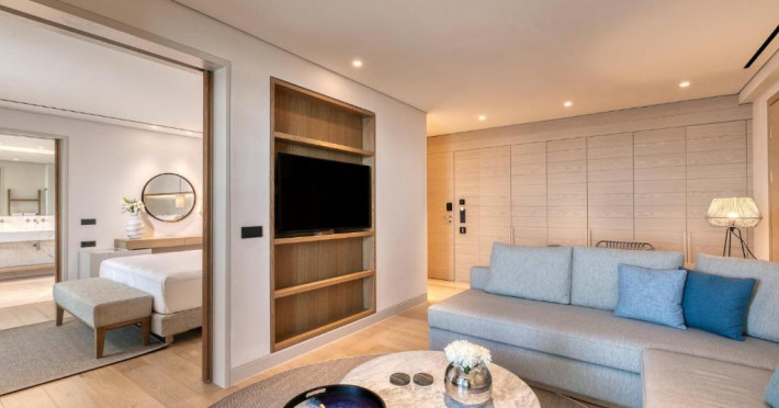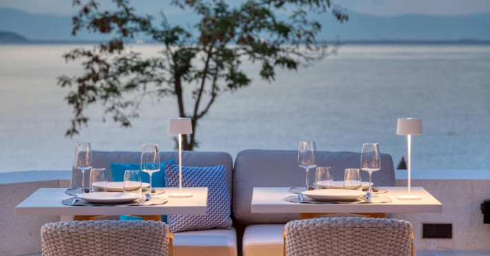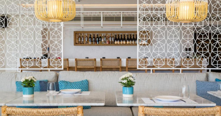 Proprietatea are un restaurant cu vedere la mare, care servește preparate mediteraneene, inspirate de tendințele moderne, precum și un lounge bar și un bar-restaurant cu piscină disponibile pe toată durata zilei.
