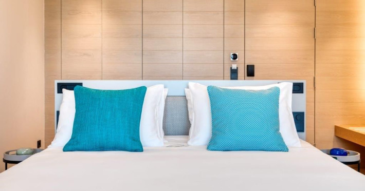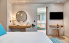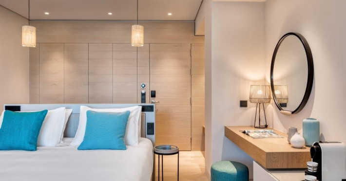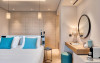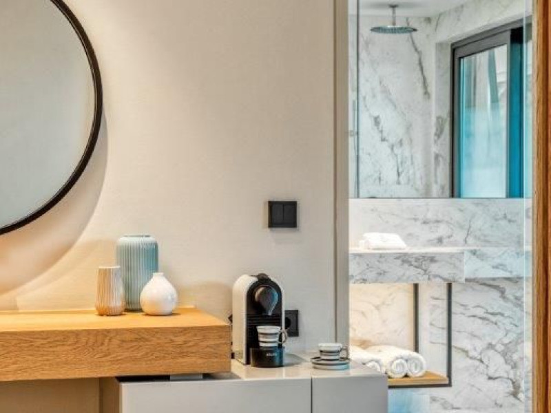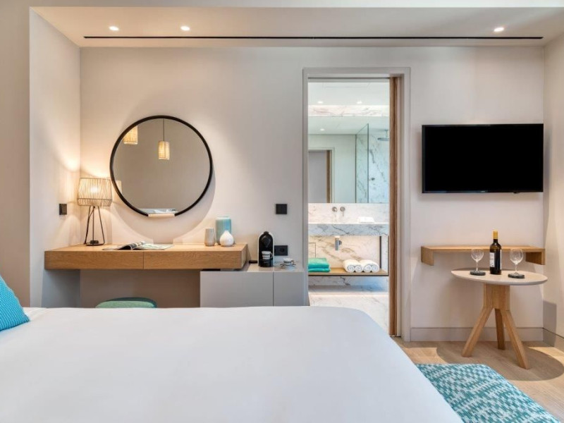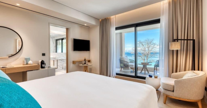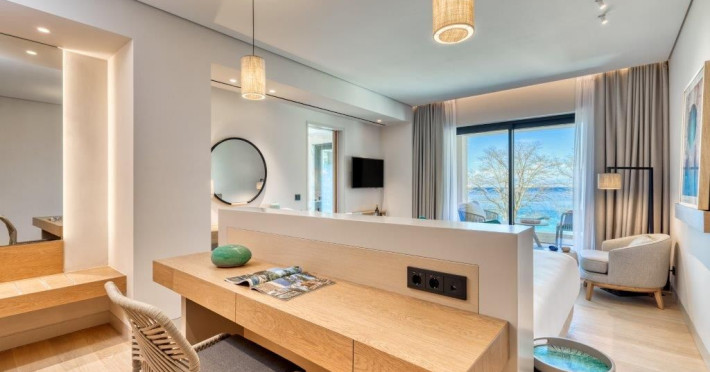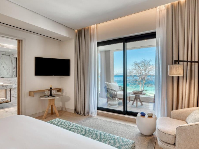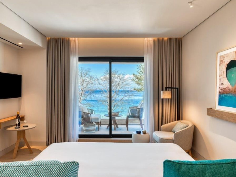 Here, you can find 30 luxurious rooms and suites, a spa, a fine dining restaurant with a breathtaking view of the endless blue sea, a sunset lounge bar with a unique ambiance, and an all-day pool bar restaurant, where you can enjoy our service while lying on the comfortable sunbeds around the heated swimming pool and the beach.