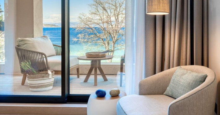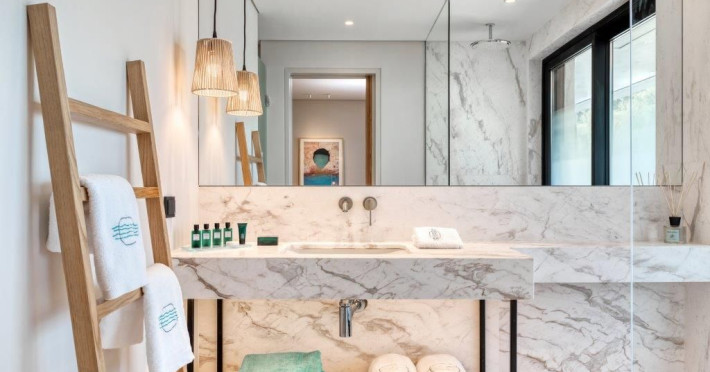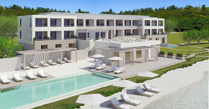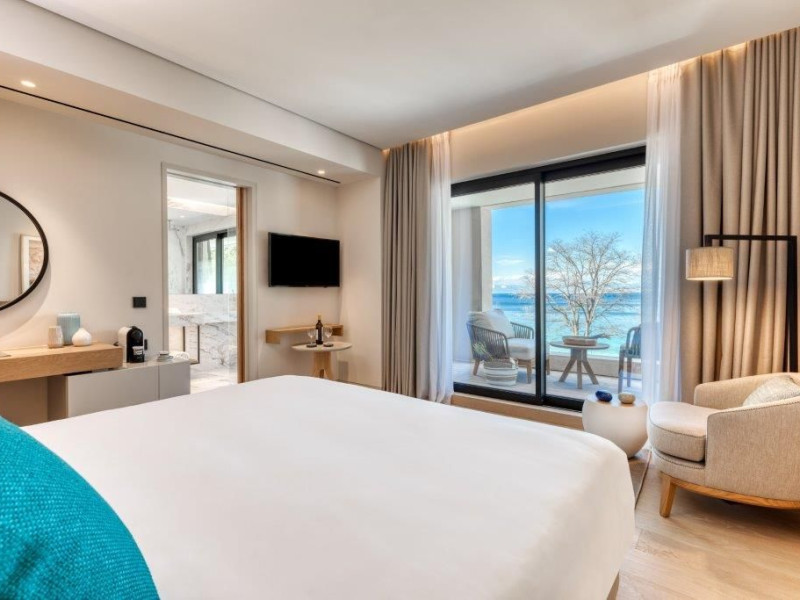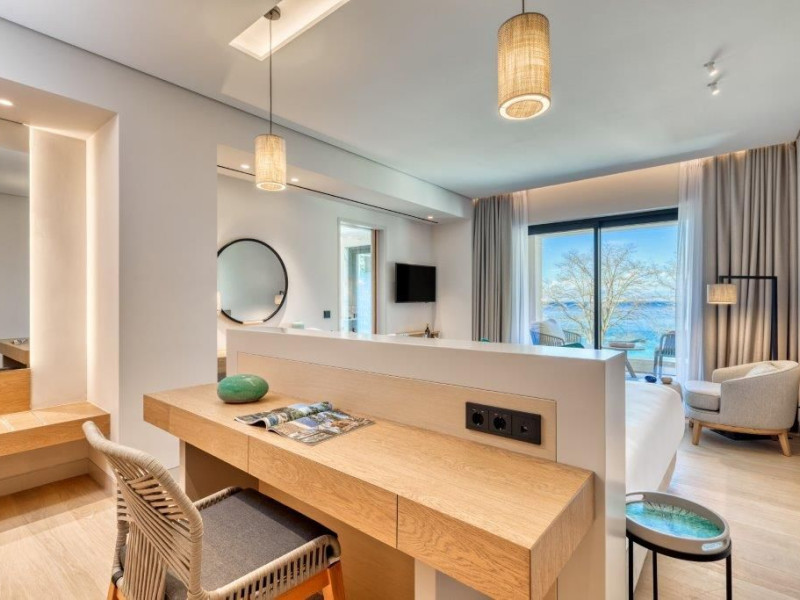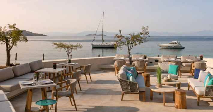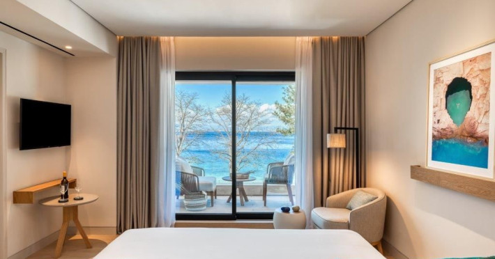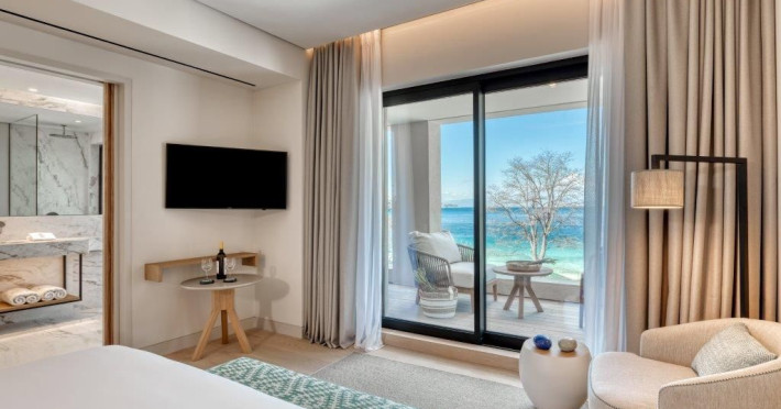 On a sandy, white beach with turquoise, crystal clear water, close enough to hear the sound of the waves, Vathi Cove Luxury Resort & Spa is a refined, aesthetic oasis. Absolute privacy and high-quality service piece together a premium leisure experience in a cosmopolitan and romantic setting.