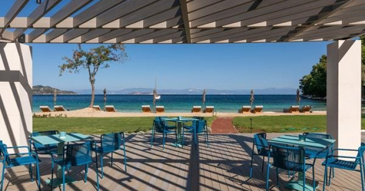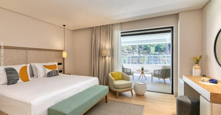 Localizare: Vathi Cove Luxury Resort & Spa din Thassos este situat intr-un loc de calm absolut si frumusete naturala incomparabila, pe plaja cu acelasi nume, renumita pentru nisipul sau alb, apele albastre ai padurea de pini virgina.