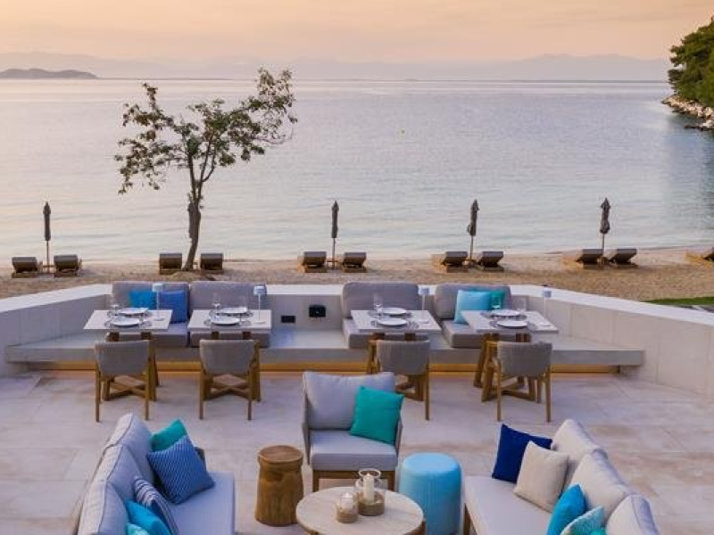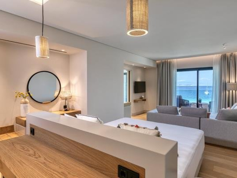 Descriere: Pe o plaja de nisip, alba, cu apa cristalina, turcoaz, suficient de aproape pentru a auzi sunetul valurilor, Vathi Cove Luxury Resort & Spa este o oaza rafinata, estetica. Confidentialitate absoluta si servicii de inalta calitate, impreuna o experienta de agrement premium intr-un cadru cosmopolit si romantic.Aici puteti gasi 30 de camere si apartamente de lux, un centru spa, un restaurant rafinat cu vedere uluitoare la marea albastra nesfarsita, un lounge bar cu apus de soare cu o ambianta unica si un restaurant cu bar pe tot parcursul zilei, unde va puteti bucura de serviciile noastre in timp ce stai intins pe sezlongurile confortabile din jurul piscinei incalzite si a plajei.