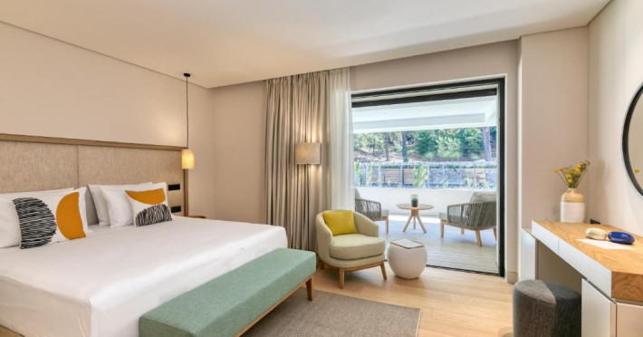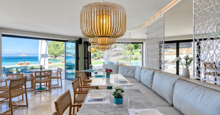 Situat chiar pe nisipul din Chrysi Ammoudia, la câțiva pași de plaja Vathi, Vathi Cove Luxury Resort & Spa este înconjurat de o pădure de pini. Plaja Porto Vathy se află la 1,3 km de Vathi Cove Luxury Resort & Spa, iar plaja Golden este la 1,4 km.