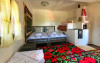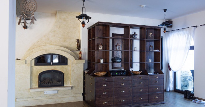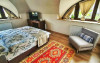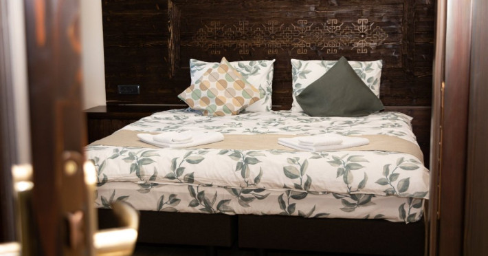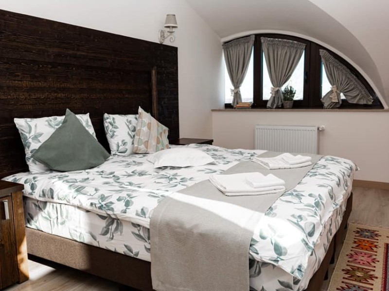 In cele 3 odai din a patra casuta elementele traditionale se imbina cu cele moderne, fiind dispuse pe 2 etaje (una la parter si doua la mansarda). La parter mai este si o camera de zi cu semineu, frigider si espressor in care va puteti retrage pentru cateva momente de relaxare.