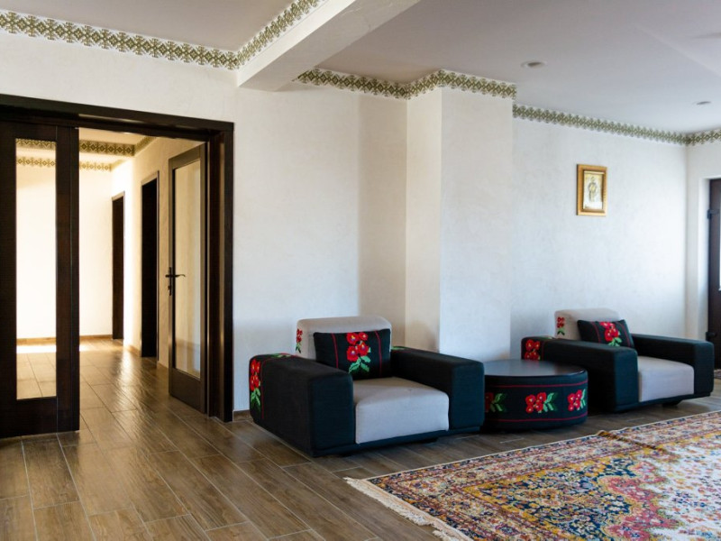 Pe vremuri, in centrul marilor sate, se afla conacul, resedinta boierilor, mari proprietari de pamant. Asa este si la Vatra Boiereasca, conacul sade impunator si vegheaza restul Vetrei, dar si imprejurimile mioritice ale zonei impadurite. Daca vrei sa simti cum s-a trait odinioara si sa te bucuri de confortul boieresc, trebuie sa te hodinesti macar cateva zile in una dintre cele 6 odai sau 2 apartamente, dispuse pe doua etaje, pe langa care vei mai descoperi o sala de evenimente generoasa, dar si o bucatarie echipata cu toate cele de trebuinta unui bucatar iscusit. De la ferestrele odailor vei fi rasplatit cu o priveliste de vis asupra padurii ce inconjoara falnic Vatra Boiereasca, iar de pe veranda vei putea sedea intr-un leagan si privi iazul si casutele traditionale. Dintre facilitatile odailor conacului amintim:pat dublu (apartamentele au si cate o canapea extensibila), baie proprie cu dus si articole de toaleta, aer conditionat,TV, minibar, halat de baie, prosoape, papuci, balcon (pentru odaile duble de la primul etaj).