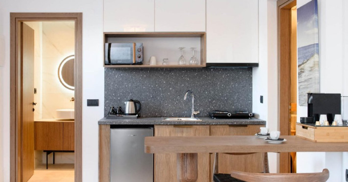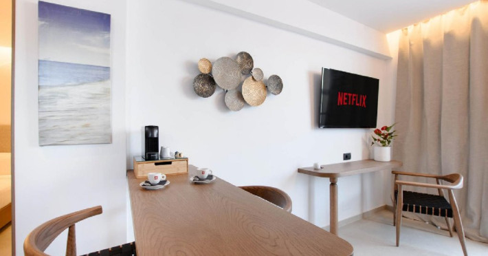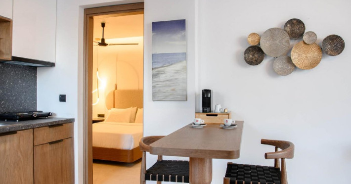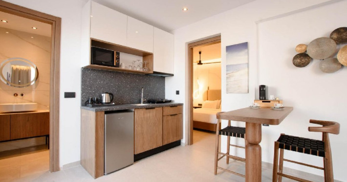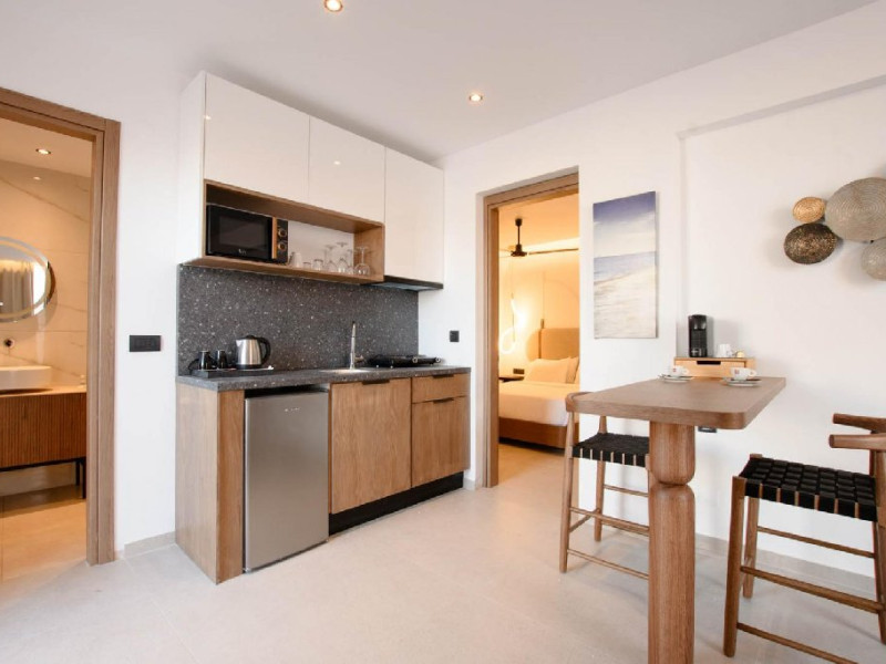 Dotari camera: Suitele includ aer conditionat individual, ventilator, Wi-Fi gratuit, TV smart cu canale satelit si muzica, seif electronic (contra cost), chicineta complet utilata, baie cu dus walk-in, uscator de par, halate, papuci si balcon cu jacuzzi privat.