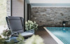 Grădina de relaxare de la Zell am See AlpineResort are vedere la muntele Schmittenhohe și oferă șezlonguri și un iaz natural.