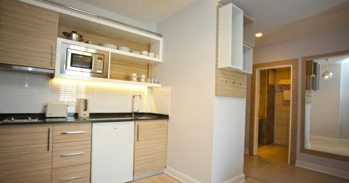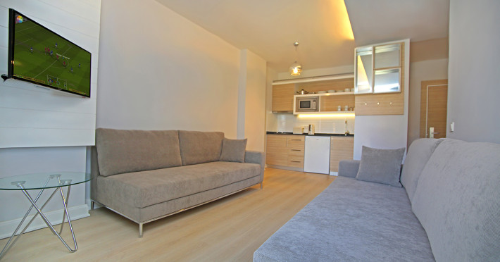 La Vega Green Apart oaspeții au la dispoziție un restaurant care servește mâncare în stil bufet și à la carte. Bucătăria turcească de la Vega Green Apart propune preparate delicioase care satisfac gusturi diverse. Masa poate fi servită atât în interior, cît si în aer liber, pe terasă, în funcție de vreme. Oaspeţii pot avea diverse băuturi răcoritoare sau alcoolice la bar. Oaspeţii îşi pot pregăti micul dejun şi alte mese şi le pot savura chiar pe balcon.
