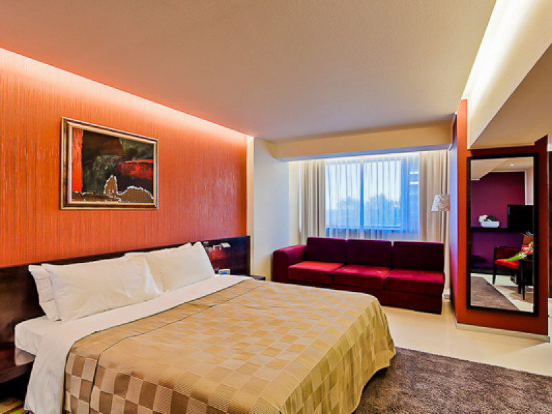Hotelul detine un numar de 125 camere, iar facilitatile oferite in acestea sunt: TV (LCD cu telecomanda), Internet prin cablu, Internet wireless in regim best-effort, telefon, radio cu ceas si CD-player, minibar, seif, instalatie individuala de climatizare si baie cu cabina de dus.