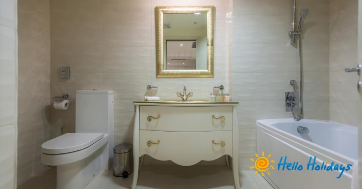 Camerele dispun de TV , instalatie individuala de climatizare, telefon, internet, minibar, seif, baie cu cabina de dus, uscator par.