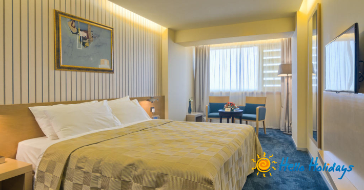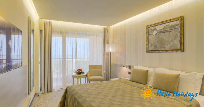 Camerele duble standard cu balcon au 1 pat matrimonial si vedere laterala la mare. Capacitatea maxima: 2 adulti cu 1 copil cu varsta 0 - 6.99 ani daca pentru acesta nu se solicita pat suplimentar. Suprafata camerei masoara 26 mp.