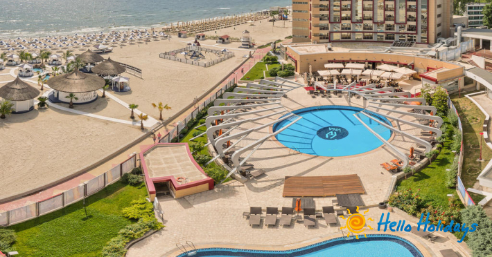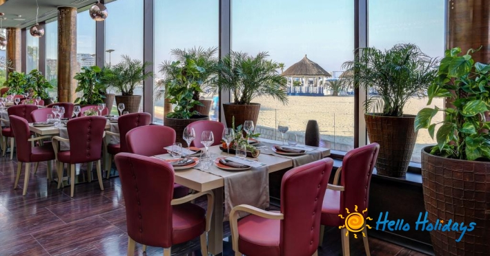 Dotari si serviciiHotelul pune la dispozitia turistilor restaurant, terasa, bar, parcare cu paza, acces persoane dizabilitati, plaja privata cu sezlonguri si umbrele gratuite, piscina in aer liber cu apa incalzita (sezlong si umbrela gratuite), centru spa, loc de joaca pentru copii cu supraveghetor, gelaterie, 2 sali de conferinta, 3 beach-baruri.Restaurant Akolade este unul dintre cele mai elegante restaurante din Mamaia si Constanta. Cu o capacitate de 220 locuri in interior si 120 locuri pe terasa, Akolade este restaurantul unde va rasfatam cu preparate delicioase din bucataria internationala.