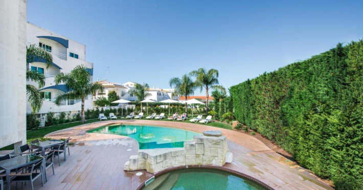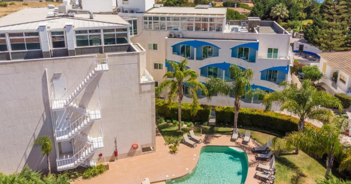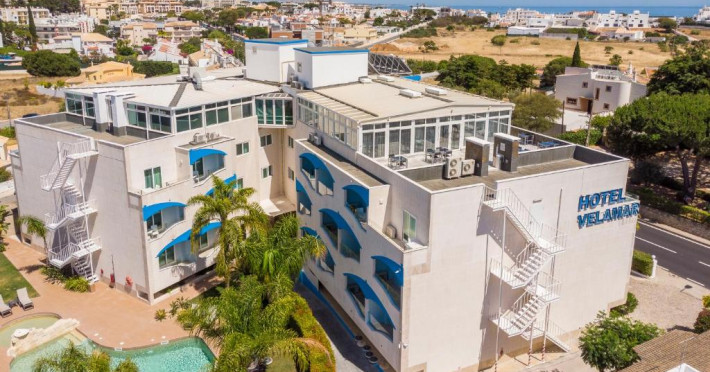 Acest hotel a fost renovat complet in anul 2016 și reinaugurat sub conceptul de hotel tip boutique. Hotelul este situat in localitatea Olhos D'Água din regiunea Albufeira. Printre multe facilități de la Vela Boutique Hotel se numără o zonă in aer liber, injurată de șezlonguri și umbrele de soare.