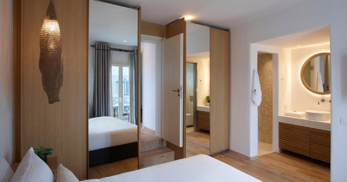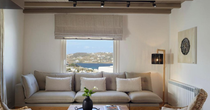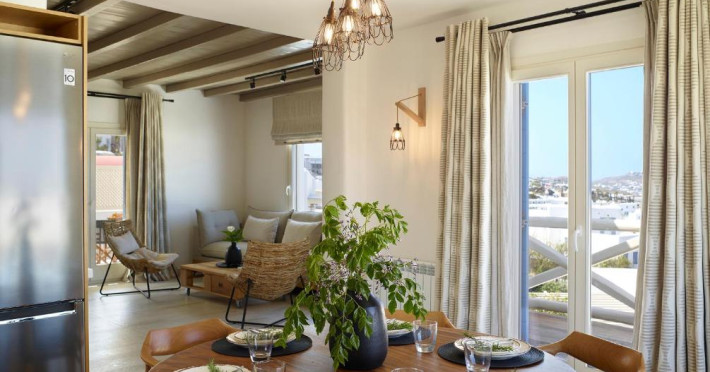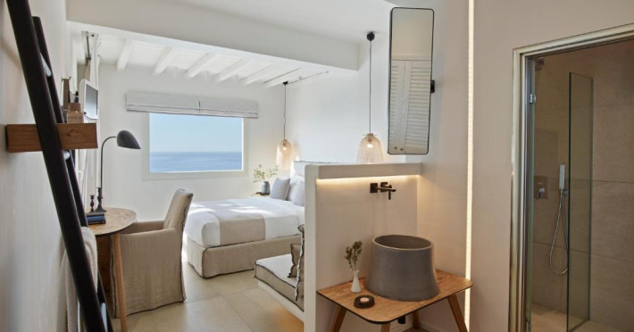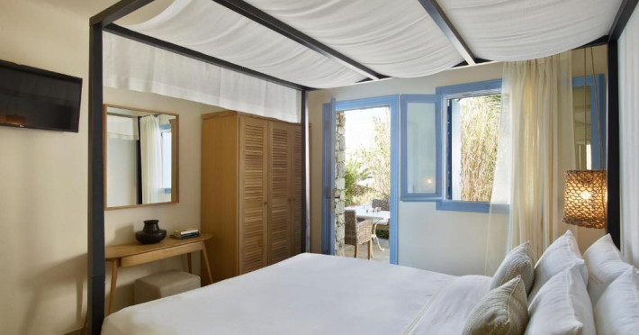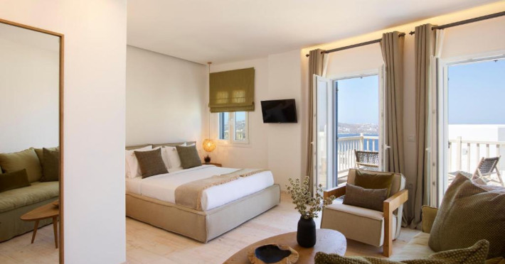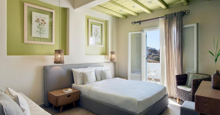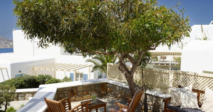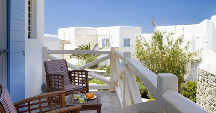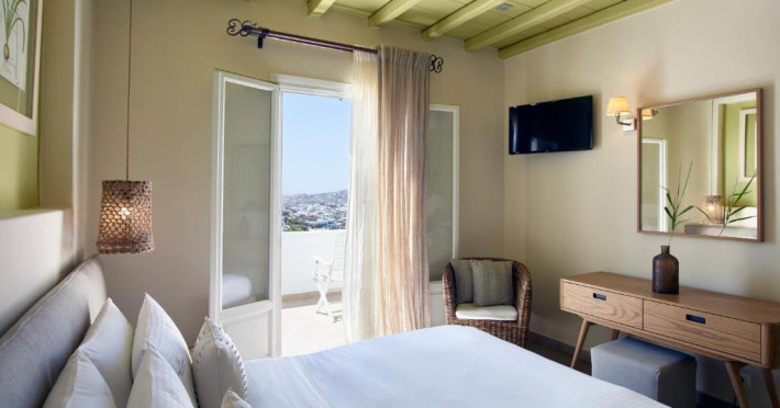 Camerele spatioase, cu vedere la Marea Egee, la orasul Mykonos si curtea hotelului, au mobilier de culoare deschisă si sunt dotate cu frigider, TV prin satelit si aer conditionat. Papuci de casă și articole de toaletă sunt oferite.