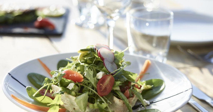 La Vencia oaspeții au la dispoziție un restaurant care servește mâncare à la carte. Preparate din bucătăria grecească așteaptă să fie degustate în fiecare zi. Masa poate fi servită atât în interior, cît si în aer liber, pe terasă, în funcție de vreme. Oaspeţii pot avea diverse băuturi răcoritoare sau alcoolice la bar. În cadrul proprietății există și un snack bar care servește băuturi și gustări. Pentru cei cu anumite nevoi de nutriție, Vencia oferă meniuri pentru diete speciale.