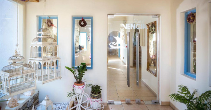 Vencia Boutique oferă unităţi de cazare elegante, cu aer condiţionat şi balcon, în localitatea cosmopolită Agios Eleftherios de pe insula Mykonos. Hotelul are o piscină infinită cu vedere la mare şi asfinţit şi oferă mese în aer liber. Restaurant Karavaki Lounge Bar este deschis întreaga zi. Oaspeții pot savura un mic dejun generos, bucurându-se de briza plăcută a mării şi admirând priveliștea spectaculoasă. Până seara târziu, aceştia pot alege dintr-o gamă largă de mâncăruri mediteraneene și băuturi. Piscina infinită, cu umbrele de soare şi prosoape de plajă gratuite, invită la relaxare. Oaspeţii se pot bucura de o varietate de cocteiluri reci, băuturi răcoritoare şi gustări delicioase la barul de la piscină, ascultând muzică lounge. Accesul gratuit la Wi-Fi este disponibil în camere și în zonele publice.