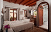 Veneto is an impressive architectural ensemble. The entrance is towered over a mosaic arch of the 1st Venetian Era, witness of the age of the building. Right beside it, the imposing stone staircase that leads to the upper floors emerges from a unique pebble floor with elaborate patterns. Party walls 50-120 cm wide assembled with plaster from Santorini, three stone wells, two fountains, a sublime yard and many particular corners make up a unique architectural puzzle. Elements of Venetian, Turkish and Greek architecture bound together through the centuries within a single building.