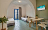 Terasa, vedere la mare, zona de relaxare, televizor cu ecran plat cu canale prin satelit, bucatarie complet utilata cu frigider, precum si baie proprie cu dus si uscator de par.