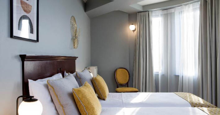 The hotel has 49 rooms, including 2 junior suites, 5 suites, single rooms and 41 double rooms, which are located on 6 storeys and are reachable by a lift. Guests are warmly welcomed by English-speaking staff at the 24-hour reception desk in the lobby. Check-in/check-out service is available round the clock. Amenities include a baggage storage service and a safe. Wireless internet access allows guests to stay connected while on holiday. Wheelchair-accessible facilities are available. There are also a number of shops that make for great strolling and browsing. A garden provides extra space for rest and relaxation in the open air. Additional facilities include a TV room. Guests arriving by car can park their vehicles in the garage or in the car park. Further services and facilities include a 24-hour security service, a car hire service, medical assistance, a transfer service, room service, a laundry service, a coin-operated laundry and a hotel shuttle bus. The business centre is on hand for guests business requirements and provides a fax machine.Datorita dinamicitatii domeniului disponibilitatea ofertelor se modifica de la un moment la altul. De aceea ofertele sunt valabile in limita locurilor disponibile. Agentia nu este responsabila pentru eventualele neconcordante care pot aparea intre informatiile privind tarifele si alte detalii din site si informatiile primite in agentie. In aceste cazuri vor avea prioritate, intotdeauna, informatiile primite in agentie.