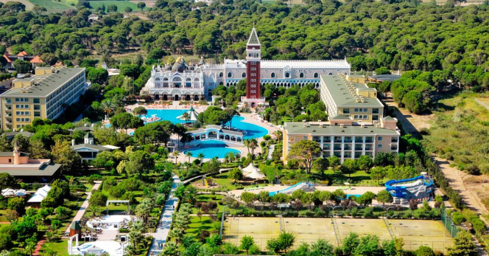 Venezia Palace Deluxe Resort este o proprietate de 5 stele care se află pe malul mării, în Lara (Antalya), și oferă 3 piscine în aer liber cu șezlonguri și umbrele de soare, precum și centru spa/wellness care asigură servicii pentru un sejur extrem de relaxant. Facilitățile de la Venezia Palace Deluxe Resort includ sală de fitness, teren de tenis și business centre. Pentru petrecerea timpului liber oaspeții au la dispoziție activități de agrement pe timpul zilei și programe de divertisment seara. Proprietatea are, de asemenea, servicii de recepție cu program non - stop, concierge și închirieri auto. Se oferă acces gratuit la internet Wi-fi în spațiile publice. Parcarea este disponibilă la proprietate gratuit.