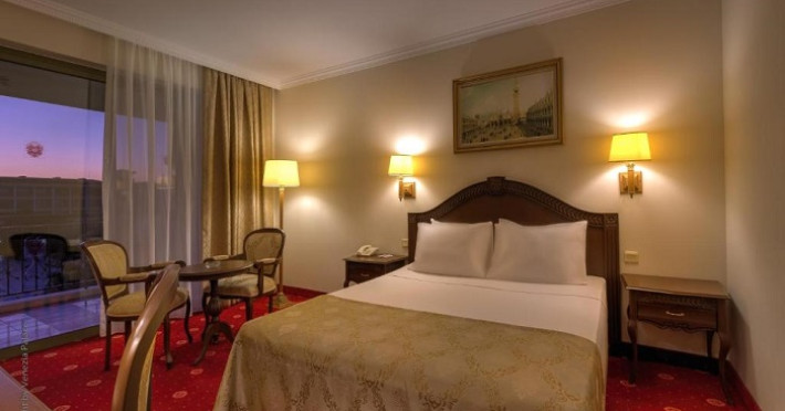 Hotelul are  repartizate camerele in 6 cladiri: San Marco Basilica (cladirea principala – lobby, Spa Center, piscina interioara), Palace of Dukes (restaurant principal, sali conferinte, magazine, Café Florian, restaurant Venetto), cladirea San Marco, cladirea Santa Maria, cladirea Castello si Campaneile Tower. Numarul total de camere este de 540: 478 camere standard in cladirile Santa Maria si Castello (25mp, max 2+1 pax), 55 camere family in aceleasi cladiri (40mp, doua camere cu usa intre ele, o baie, max 2+2 pax), Royal suit room (100mp, un dormitor, colt de lucru, o baie cu Jacuzzi, max 2 pax). Vilele sunt localizate in zona de gradina (130mp, doua etaje: la parter un dormitor, o baie, bucatarie in stil american, salon si toaleta; la etajul superior: doua dormitoare, doua bai - una cu Jacuzzi, max 6+2 pax).