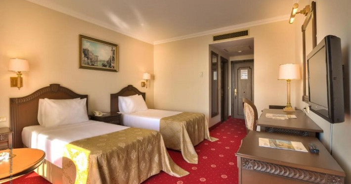 Camerele au vedere la mare, la gradina sau la piscina, baie privata cu cada, uscator de par, telefon in baie, aer conditionat centralizat, telefon direct, min bar (apa, bauturi racoritoare, apa minerala, sticlute de vin, chips, mancare bebelusi in functie de varsta copilului - realimentat zilnic), fierbator, cafea si ceai, seif, mocheta, TV prin satelit si canale de muzica, conexiune internet Wi-Fi gratuita.