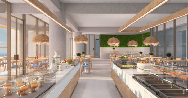 Un complex cu trei etaje, recepție spațioasă cu zona de lobby, bar principal cu terasă mare pe marginea piscinei, colț TV prin satelit (cu Smart TV și abonament Netflix preplătit), 2 lifturi, piscina principală cu apă dulce în zona de plajă (cu o temperatură minimă a apei de 22 °C în timpul sezonului de jos), șezlonguri și umbrele lângă piscină, plajă cu nisip cu șezlonguri, umbrele și foișoare, restaurant principal, A la carte Restaurant, bar pe plajă Restaurant, bar în hol, acces la internet wireless în tot complexul hotelier, glonier 24 de ore, serviciul de cameră, serviciul de menajeră zilnic, parcare privată (cu încărcător pentru mașină electrică), sală de sport interioară și exterioară, facilități de spa, luați masa în jur (pentru fiecare sejur săptămânal, o cină gratuită la restaurantele A La Carte din Ventale).Descriere hotel