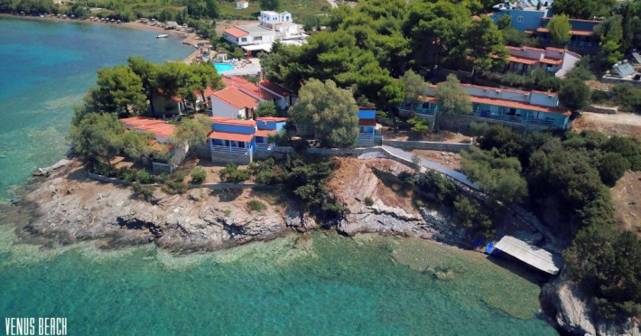 Camerele confortabile de la Venus Beach au pardoseală de gresie/ marmură, aer condiționat, Tv cu canale prin satelit și seif. Unele camere au balcon cu vedere la mare sau la grădină. În camere există baie cu cadă sau duș ce are în dotare foehn și articole de toaletă gratuite. Anumite camere au cadă cu hidromasaj care asigură un plus de confort și răsfăț. Fiecare unitate de cazare are frigider.