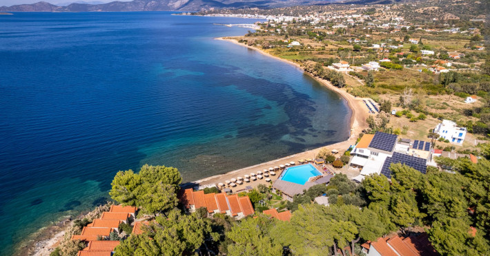 In Greek mythology, the goddess Aphrodite marveled with her fairy-tale beauty. Venus Beach Hotel promises to enchant you even more.Overlooking the inexhaustible blue of the South Evian Gulf, each refined visitor lives our own “urban” myth. Inside a wonderful natural, turquoise canvas, you will find our complex consisting of 115 Standard and Superior bungalows amphitheatrically built in a privileged position as a small village in an area of 25 acres in the green, overlooking the sea or the pool or our wonderful garden filled with olive trees,It is a space of hospitality close to the port of Nea Stira, built with the taste and the love of the owners, that awaits you to spend an unforgettable holiday with the glory of yesterday,and the nobility and the comforts of today. Be inspired by the combination of sky, sea, urban lifestyle and decoration that create the most enchanting canvas, especially during the sunset! Our rich and delightful buffet during breakfast and dinner on our first floor restaurant will bring you closer to the famous Greek gastronomy with our dishes made by ingredients selected from our local farmers. Here you will feel guests, not customers.In Greek mythology, the goddess Aphrodite marveled with her fairy-tale beauty. Venus Beach Hotel promises to enchant you even more.Overlooking the inexhaustible blue of the South Evian Gulf, each refined visitor lives our own “urban” myth. Inside a wonderful natural, turquoise canvas, you will find our complex consisting of 115 Standard and Superior bungalows amphitheatrically built in a privileged position as a small village in an area of 25 acres in the green, overlooking the sea or the pool or our wonderful garden filled with olive trees,It is a space of hospitality close to the port of Nea Stira, built with the taste and the love of the owners, that awaits you to spend an unforgettable holiday with the glory of yesterday,and the nobility and the comforts of today. Be inspired by the combination of sky, sea, urban lifestyle and decoration that create the most enchanting canvas, especially during the sunset! Our rich and delightful buffet during breakfast and dinner on our first floor restaurant will bring you closer to the famous Greek gastronomy with our dishes made by ingredients selected from our local farmers. Here you will feel guests, not customers.
