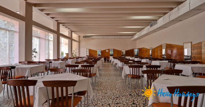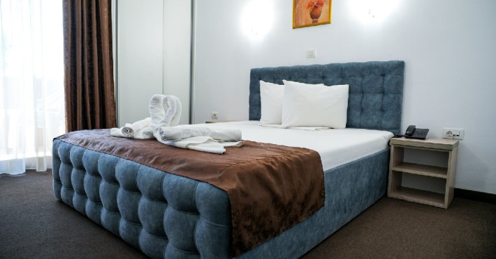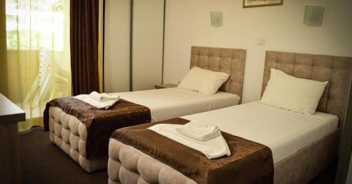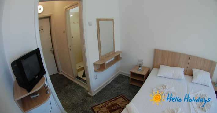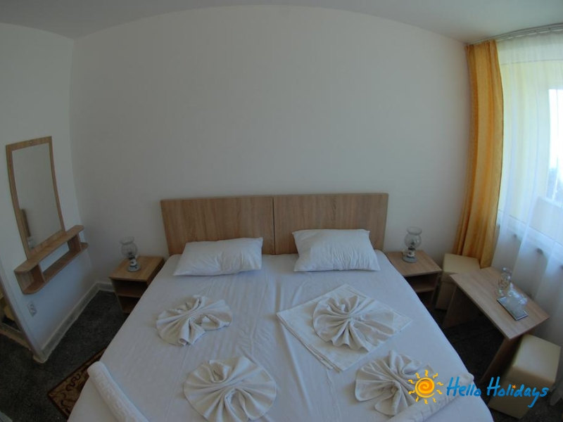 Hotelul are o capacitate de 115 camere duble, dotate cu baie proprie cu dus, TV cablu si pardoseala acoperita de covoare. O parte dintre camerele hotelului sunt prevazute cu balcon. Turistii care doresca frigider in camera il pot inchiria de la receptie contra unei sume care se achita pe loc, in limita disponibilitatii.
