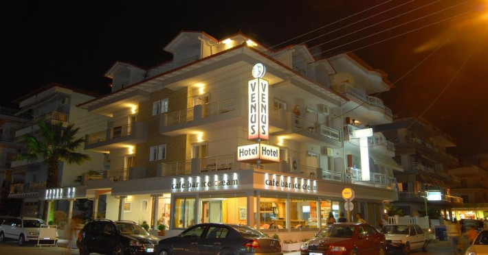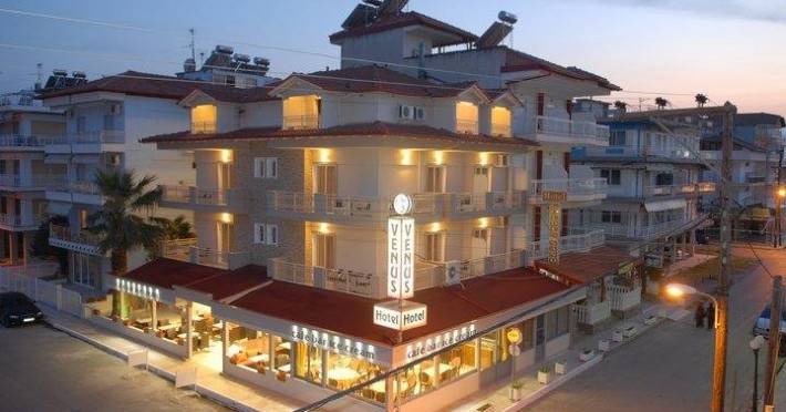 Locatie: Hotelul Venus beneficiaza de o locatie centrala in statiunea Paralia Katerini, la numai 50 de metri de plaja si la 8 km de orasul Katerini.Facilitati camere: Hotelul Venus ofera cazare in 20 de camere single, duble si triple. Toate camerele au in dotare: aer conditionat, internet Wi-Fi, TV cablu, TV LCD, frigider, telefon, baie cu dus, incalzire si balcon.