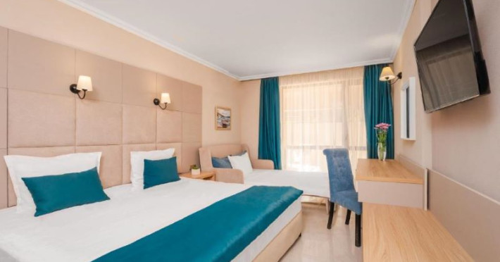 Hotelul Veramar Beach este poziționat pe malul mării, într-un cadru liniștit și relaxant, înconjurat de natură verde, oferind o panoramă încântătoare către dealurile de pe coastă și către Capul Kaliakra. Acest cadru natural permite oaspeților să se bucure de liniștea și confortul unei zone naturale, având acces direct la nisipul plajei și la apele albastre ale mării. Prin această conexiune directă cu plaja, hotelul reușește să creeze o atmosferă autentică și plăcută, oferind o experiență de neuitat în mijlocul frumuseții naturale a litoralului.Facilități camere