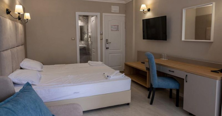 Fiecare cameră este echipată cu aer condiționat, televizor, mini-frigider, telefon, baie cu cadă/duș, uscător de păr și balcon.