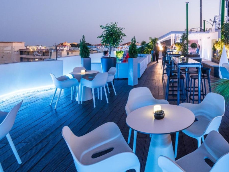 Facilitati hotel: Hotelul pune la dispozitia turistilor: receptie 24h, piscina cu sezlonguri si umbrele, bar, bar pe terasa de pe acoperis, sala de evenimente, serviciu rent a car si inchiriere biciclete, baby cot.