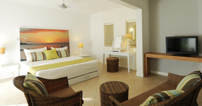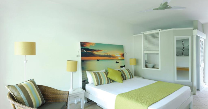 Camerele de la Veranda Grand Baie Hotel & Spa sunt decorate in nuante de verde, cu mobilier modern, si au balcon cu vedere panoramică la Oceanul Indian și la piscină. Toate unitătile au aer conditionat si baie privată.