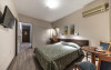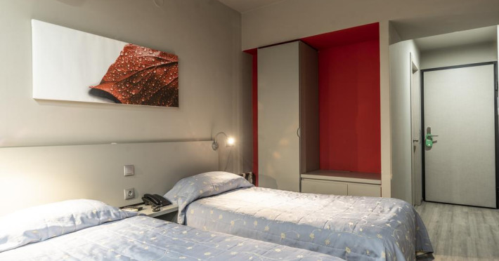 Fiecare cameră dispune de cană pentru prepararea apei calde. Oaspeții pot solicita serviciul de room service pentru a servi masa sau diverse băuturi. În camere există baie cu cadă sau duș ce are în dotare foehn și articole de toaletă gratuite. Unele camere cu balcon cu vedere la oraș. Camerele luminoase de la Vergina Hotel sunt dotate cu parchet, aer condiționat, Tv și seif. Oaspeții au acces gratuit la serviciul Wi-fi în camere. Curățenia in cameră se face zilnic. Fiecare unitate de cazare are frigider. Proprietatea oferă camere pentru familie cu o suprafață mai mare și un număr mai mare de paturi față de cele standard. Se pot rezerva de asemenea camere pentru nefumători.