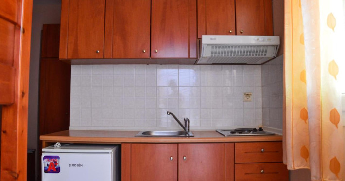 Bucatarie de mici dimensiuni, utilata cu minimul necesar: chiuveta, plita (cu maxim 2 ochiuri), frigider/racitor (frigider de dimensiuni mici fara congelator), tacamuri, pahare/cani, oala/ibric. Chicineta NU se poate folosi pentru prepararea mancarurilor gatite, aceasta este exclusiv pentru a prepara ceva mai rapid (ceai/cafea, supe instant, legume, paste) in niciun caz pentru prajeli sau pentru a face mancare care necesita mult timp de preparare si al carei miros poate deranja ceilalti turisti aflati in unitatea de cazare. Folosirea chicinetei pentru prajeli (peste, carne etc.) este strict INTERZISA si orice abatere de la aceasta regula poate fi penalizata de proprietarul unitatii de cazare. Unele unitati de cazare asigura bucatarie exterioara.