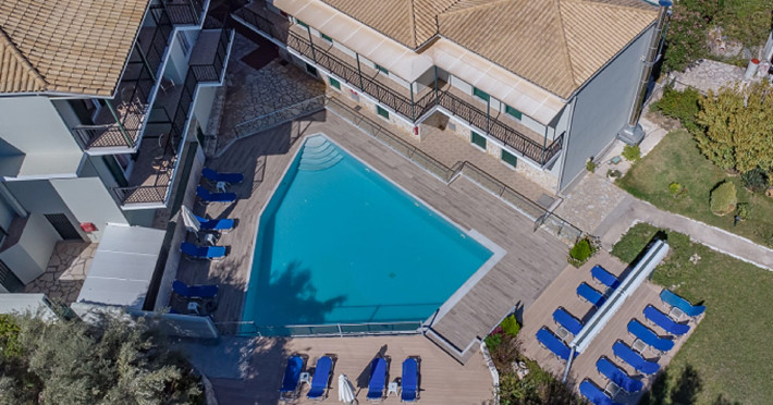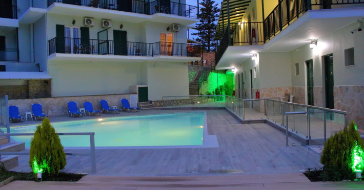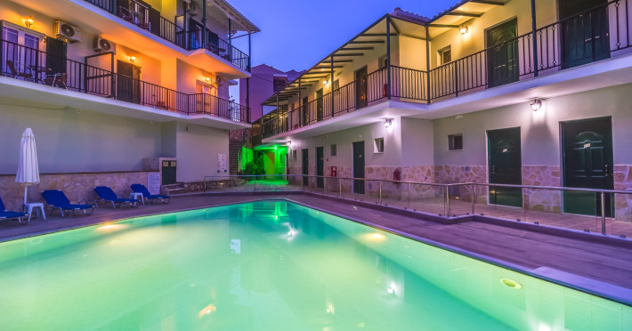 This small Hotel, with only 25 rooms, promises carefree, peaceful and relaxing holidays. The beautiful courtyard, the modern pool and the elegant rooms with stylish furniture make your stay a dream. Moreover, the homemade breakfast, with the traditional flavours, is a touch of pure pleasure.