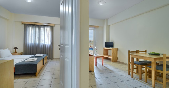 Apartament cu un dormitor aproximativ 39 m2; 1 dormitor separat si 1 camera de zi/dormit (2 paturi twin si 2 canapele)