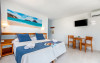The apart Apartamentos Vibra Calima (Adults Only) is around 300 m from the city centre. The hotel is equipped with a 24h reception, Wi-Fi as well as showers and changing rooms. In the outdoor area of the property you will find a pool that is open seasonally, where sun loungers are available for free. Furthermore, you can relax outdoors on the sun terrace. You can store your luggage in the hotel's storage room. There is also an ironing service available at an additional cost to customers. If necessary, you can contact the medical centre (for a fee). Guests at the accommodation can get a wake-up call from the hotel personnel. If you want to explore the holiday region, you can use the car rental service close to the hotel (extra fee). At the reception, tickets are offered for excursions in the area. American Express, Euro/Master Card and Visa are accepted as means of payment. Due to its barrier-free facilities , such as barrier-free entrances, the hotel is also suitable for wheelchair users. Distances- Nearest town: approximately at 15 km