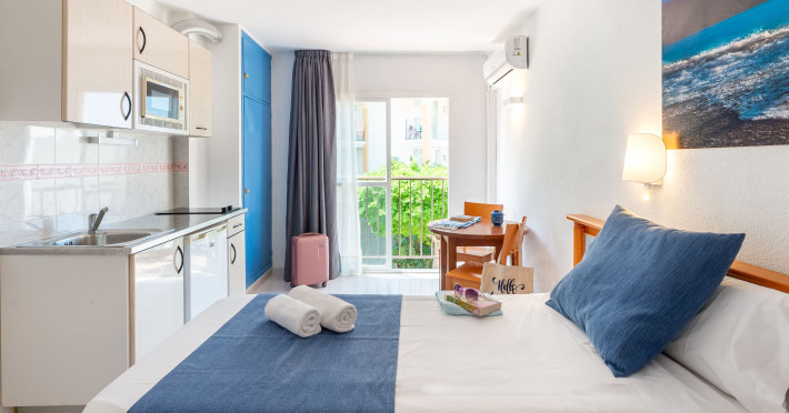 The apart Apartamentos Vibra Calima (Adults Only) is around 300 m from the city centre. The hotel is equipped with a 24h reception, Wi-Fi as well as showers and changing rooms. In the outdoor area of the property you will find a pool that is open seasonally, where sun loungers are available for free. Furthermore, you can relax outdoors on the sun terrace. You can store your luggage in the hotel's storage room. There is also an ironing service available at an additional cost to customers. If necessary, you can contact the medical centre (for a fee). Guests at the accommodation can get a wake-up call from the hotel personnel. If you want to explore the holiday region, you can use the car rental service close to the hotel (extra fee). At the reception, tickets are offered for excursions in the area. American Express, Euro/Master Card and Visa are accepted as means of payment. Due to its barrier-free facilities , such as barrier-free entrances, the hotel is also suitable for wheelchair users. Distances
