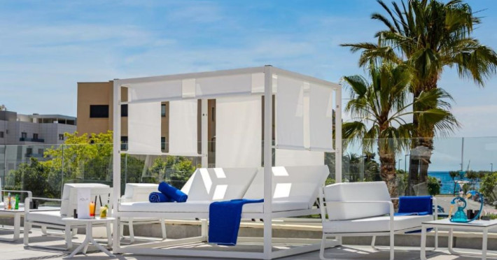 Cele mai multe camere ale hotelului au vedere la mare si sunt dotate cu baie proprie, balcon, aer conditionat si TV prin satelit. Toate camerele dspun de Wi-Fi gratuit.