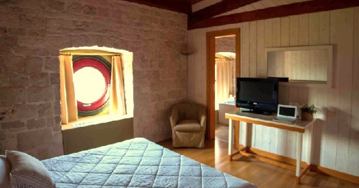 Facilitati camere: Camerele conacului sunt impartite in 3 sectiuni: Masseria, Uliveto, Granaio si sunt dotate cu: baie cu dus sau cada, TV LCD, aer conditionat /incalzire, birou, wifi.