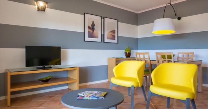 Dotari camera: Hotelul ofera apartamente moderne, spatioase si complet utilate, concepute pentru a asigura confort pe durata sejurului. Unitatile dispun de aer conditionat, Wi-Fi gratuit, televizor, telefon si seif. Fiecare apartament include o bucatarie complet utilata, cu frigider, plita, cuptor, fierbator si ustensile de bucatarie, precum si o zona de living cu canapea extensibila si masa de dining. Baile sunt dotate cu cada sau dus, uscator de par si articole de toaleta. Apartamentele au balcon sau terasa, iar tipurile de cazare difera ca suprafata si capacitate, fiind potrivite pentru familii de diferite dimensiuni.