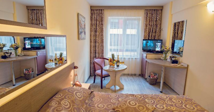 The hotel has a lift and features 28 rooms. The friendly staff at the reception desk are happy to answer any questions. Services such as a baggage storage service and a safe ensure a comfortable stay. Wireless internet access allows guests to stay connected while on holiday. The tour desk offers assistance with booking excursions. Everyday necessities can be purchased at the supermarket. Additional facilities include a TV room. Guests arriving by car can park their vehicles in the garage or in the car park. Further services and facilities include a 24-hour security service, a babysitting service, a childcare service, a car hire service, a transfer service, room service, a laundry service, a coin-operated laundry and a hotel shuttle bus. A bicycle hire service gives guests the opportunity to explore the surrounding area independently. A fax machine is available for guests business needs.Datorita dinamicitatii domeniului disponibilitatea ofertelor se modifica de la un moment la altul. De aceea ofertele sunt valabile in limita locurilor disponibile. Agentia nu este responsabila pentru eventualele neconcordante care pot aparea intre informatiile privind tarifele si alte detalii din site si informatiile primite in agentie. In aceste cazuri vor avea prioritate, intotdeauna, informatiile primite in agentie.